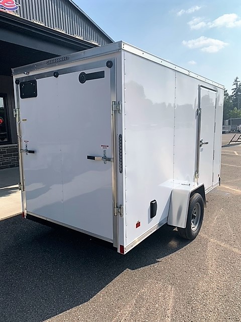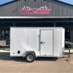 Other Features: 2″ X 3″ MAIN FRAME, 18″ V-NOSE W/ CHECKERPLATE, COBRA LINED TONGUE/REAR BUMPER, 16″ O.C. FLOOR AND WALLS, 24″ STONEGUARD, SIDE DOOR RV LATCH & BAR LOCK, 1 PC ALUM. ROOF, 4-WAY FLAT WIRING, 4 D-RINGS IN FLOOR, 3/8″ PLYWOOD WALLS, 24″ O.C. ROOF, REAR STABLIZERS (PAIR), SEMI-SCREWLESS (SCREWS ON SEAMS ONLY), SIDE VENTS X2, PLATED DOOR HOLD-BACKS